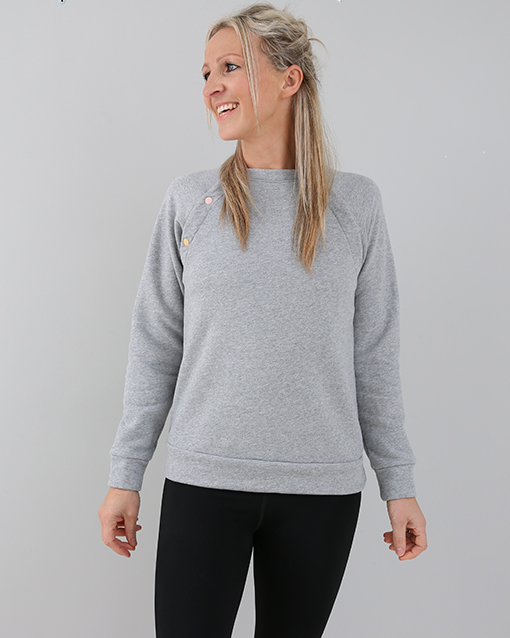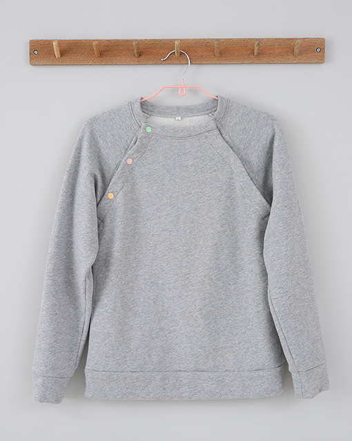 A simple yet stylish sweatshirt with an ingenius design. Keeping you warm in winter, this cosy jumper has 3 poppers on each shoulder which are easy to open and close meaning you can breast feed in comfort without having to remove or lift it up!